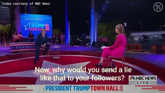 NBC News’ Savannah Guthrie hosted Trump’s town hall meeting in Miami, Florida, “which proved to be contentious from the start as moderator and candidate sparred over questions on COVID-19 and white supremacy,” wrote Henderson.