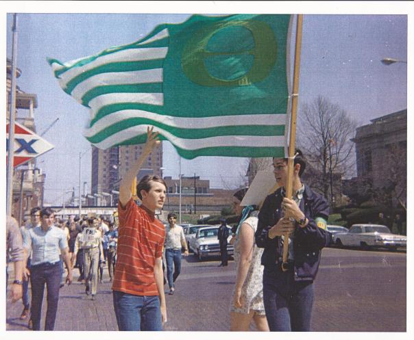 “Give earth a chance!” demonstrators chanted as they chain-danced in the streets, while denouncing polluters. Some of them wore gas masks to protest smoggy skies and bashed autos with sledgehammers. They vented anger, peacefully, over beaches too filthy for swimming and water too contaminated to drink. Some spent the day picking trash out of rivers and streams.
