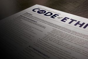 It hates being expected to actually do anything about ethics and insists the code of ethics is strictly voluntary, take it or leave it. The society says its code is “a statement of abiding principles” and “not a set of rules.”