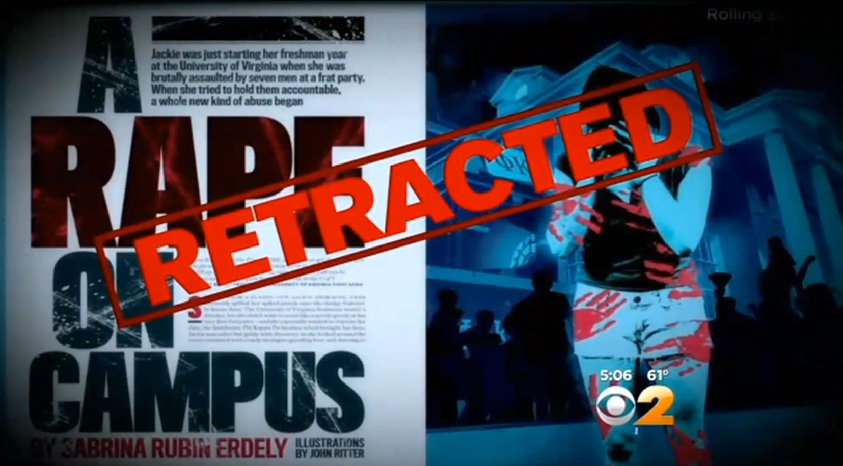 Rolling Stone retracted its 2014 article about an alleged campus rape. (Media Matters for America illustration)
